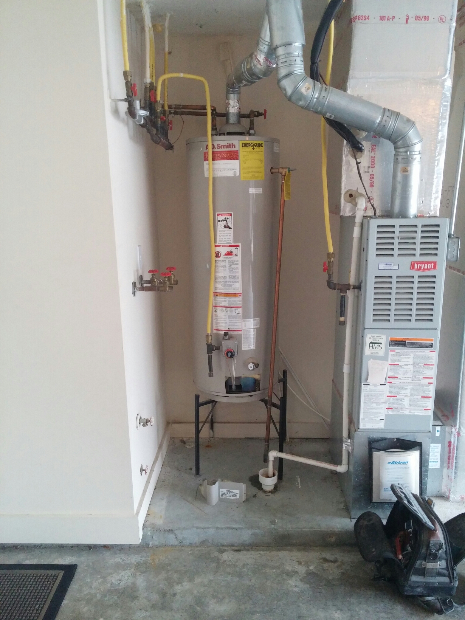 Remove and replace water heater repipe water lines repipe gas line repipe flu