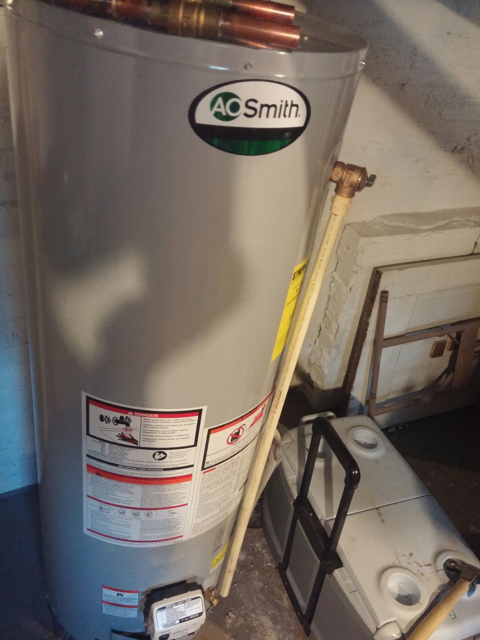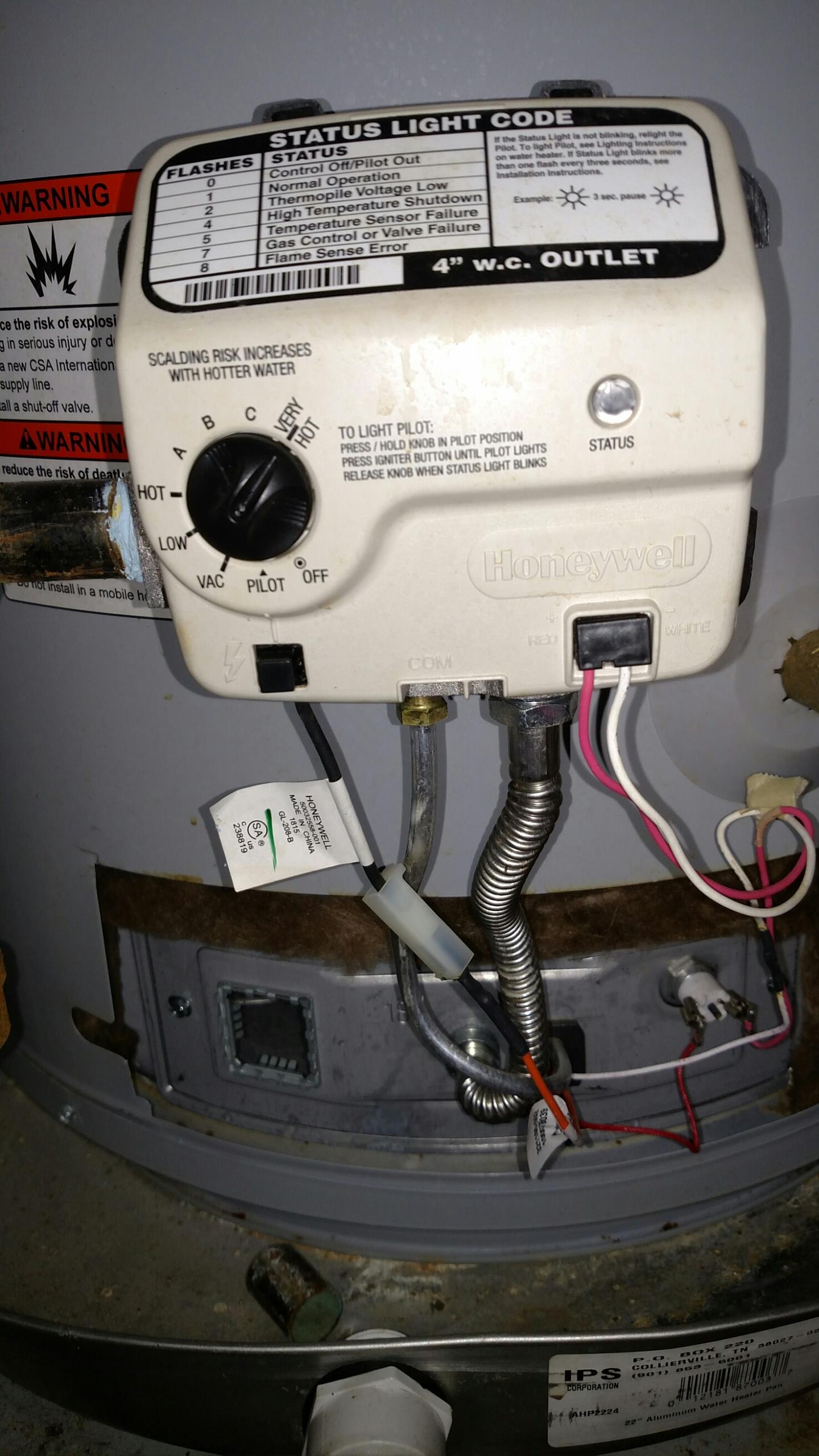 Installed water heater gas valve