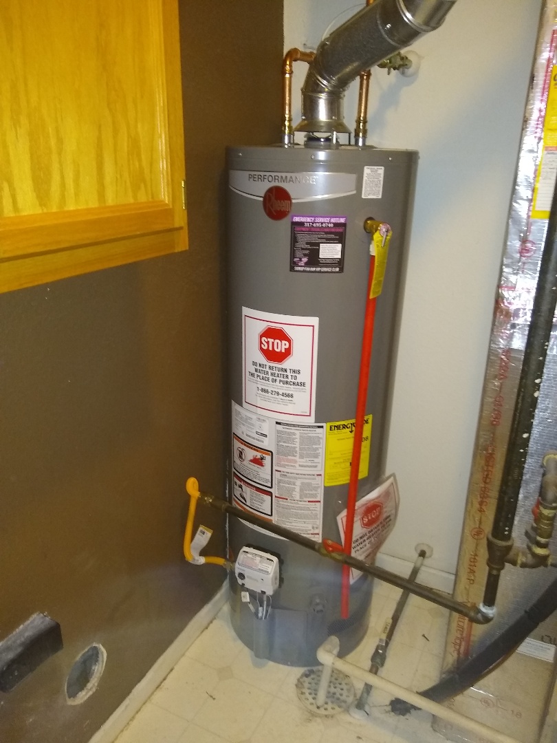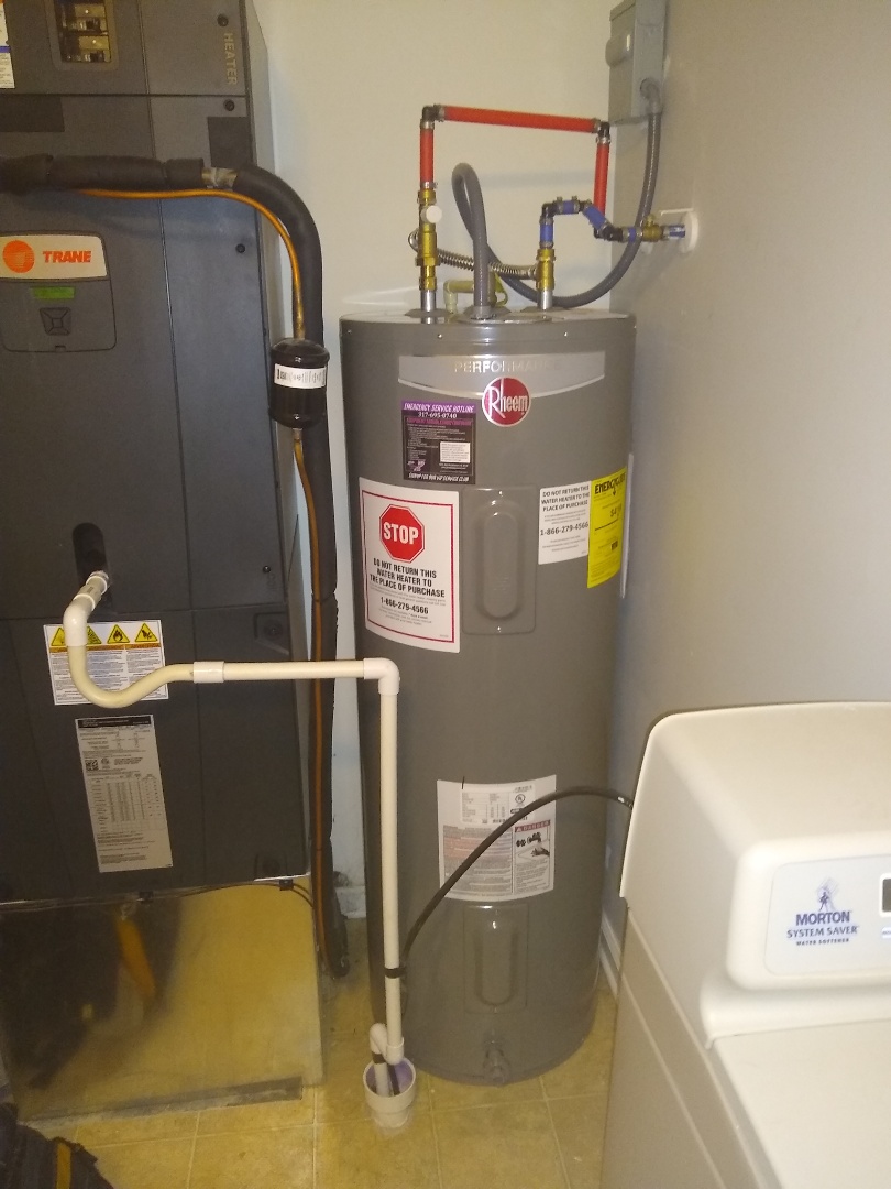 Installed new 50 gallon Rheem electric water heater and new flapper for upstairs Hall bathroom