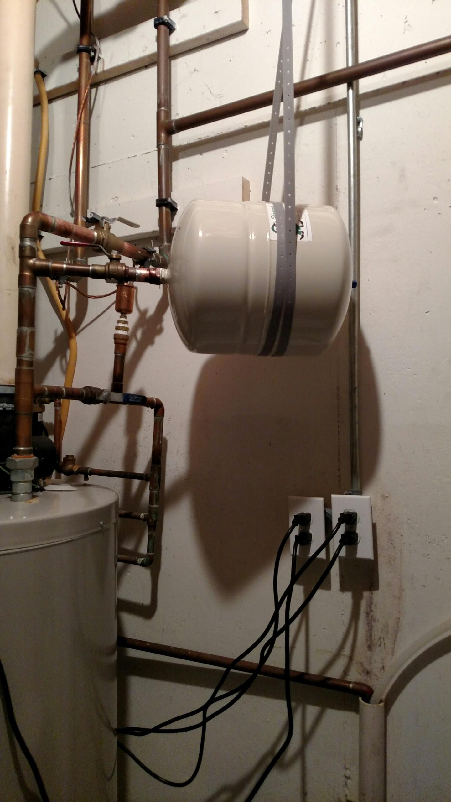 Water heater, expansion tank, plumbing