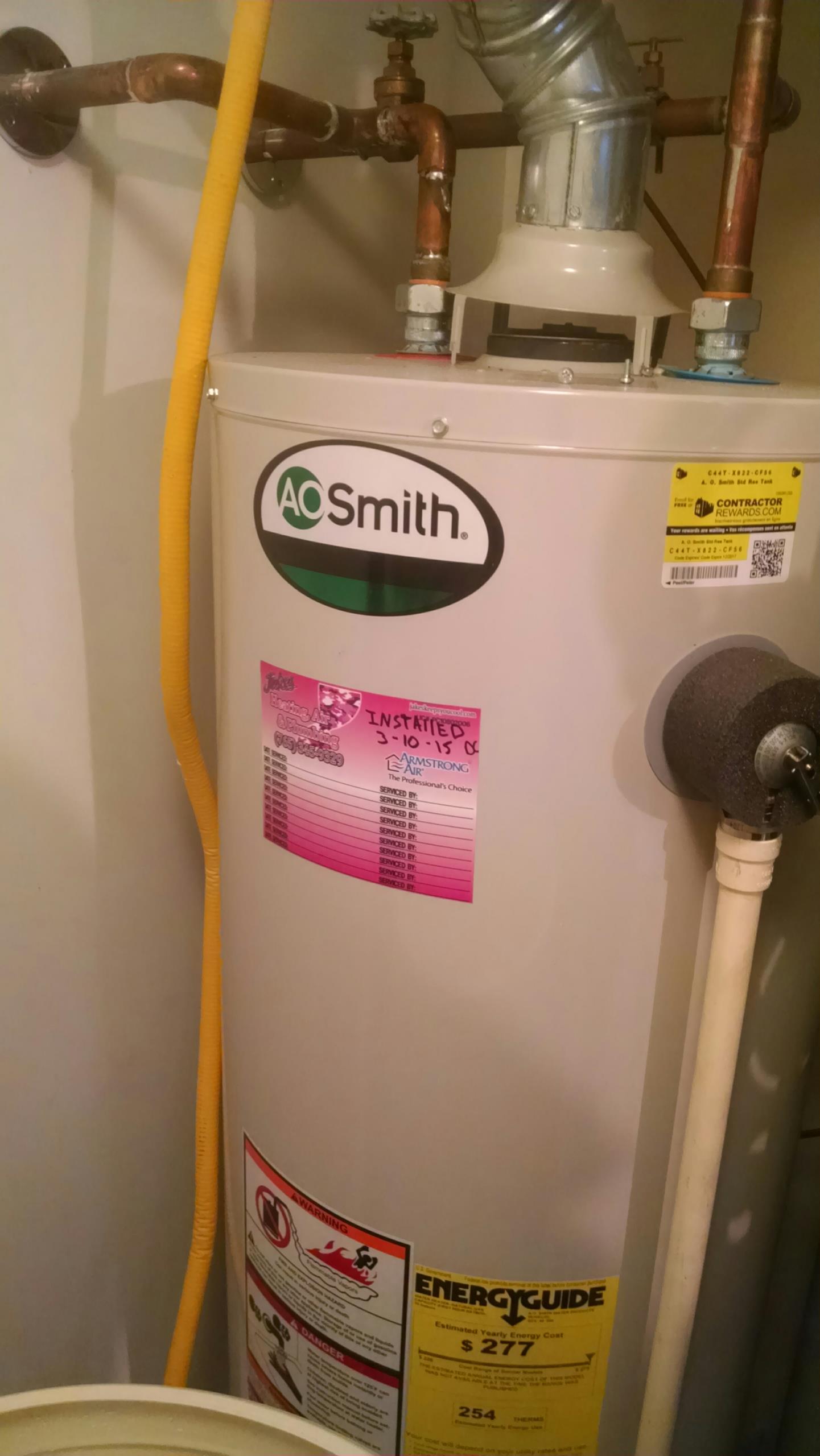 A o Smith power vent pro max water heater service has valve replacement new water heater